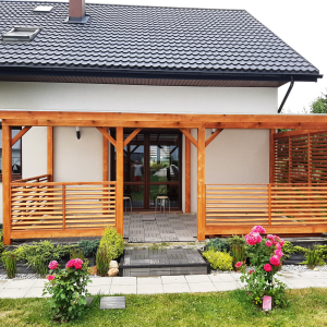– materiał na taras + ok. 30 cm wypuszczenie dachu;